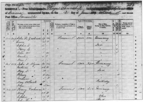 Die Familie zur Oeveste auf dem Formular der Volkszählung 1860.